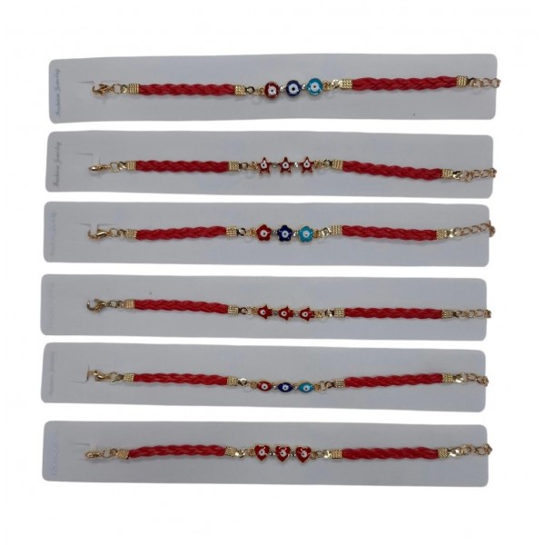 PULSERAS ROJA TRENZADA CON 3 DIGE CON OJITO DE LA SUERTE.