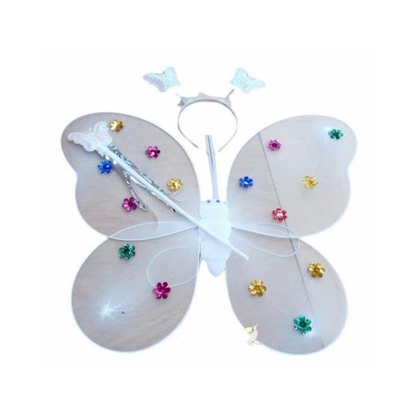 SET ALITAS DE MARIPOSA CON VINCHA Y VARITA BLANCA
