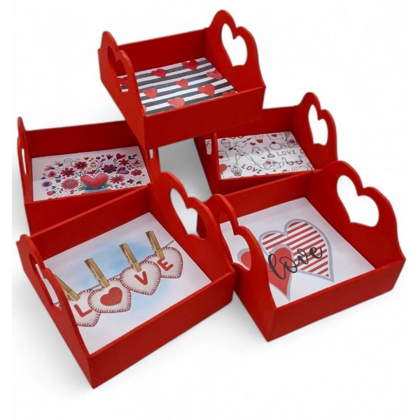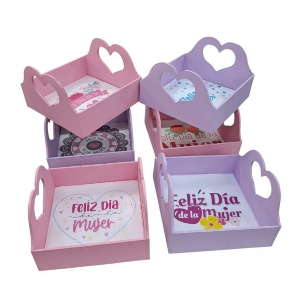 BANDEJITA MADERA 14X14 CON ASA CORAZON